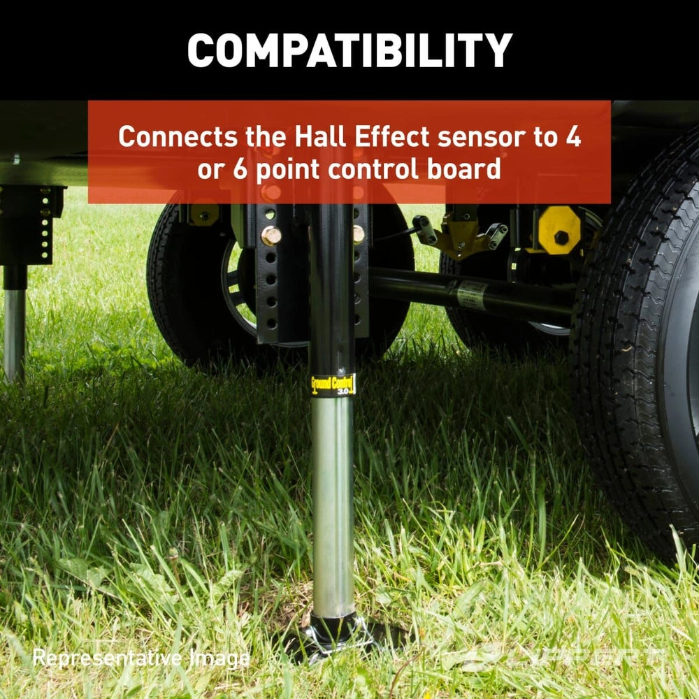 This replacement Hall Effect RV sensor-to-brain wiring harness #243688 is for 4-point or 6-point control boards. It is a genuine Lippert replacement part, and it includes the harness only. The control box and sensor are not included.